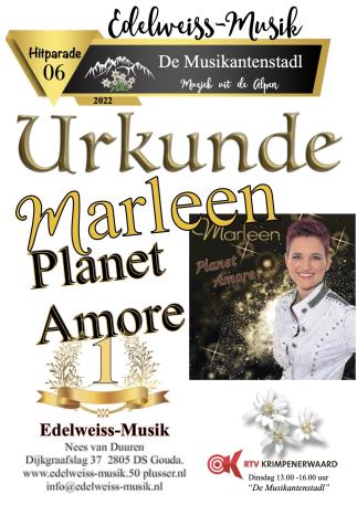 PLATZ 1 in Holland mit Planet Amore - ein riesiges Dankeschön für die vielen Votings sowie an Nees van Duuren und seiner Edelweiss Hitparade