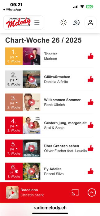 Platz 1 in den Charts von Radio Melody in WO 26+27